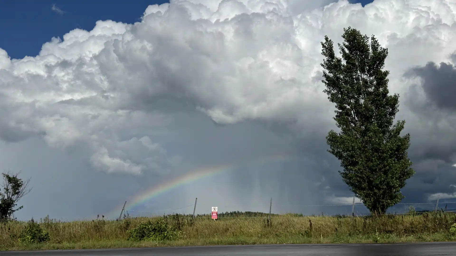 こんな大きな雲の下の虹は、なかなか市街地では見れませんよね